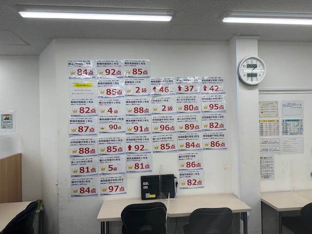 生徒たちの頑張りを称えるために点数アップを掲示しています。